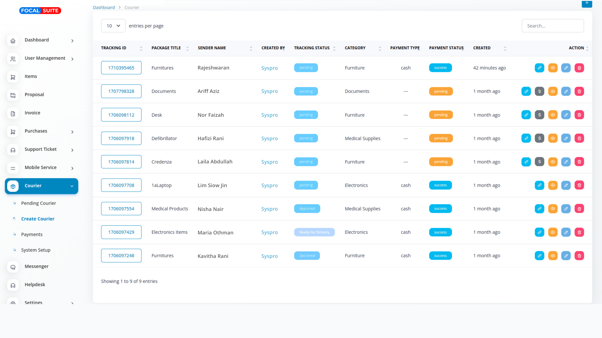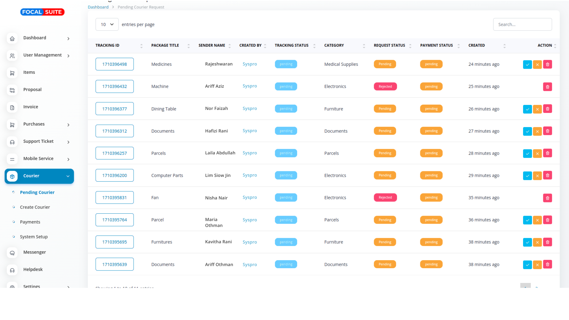 Experience seamless deliveries with the Courier Management System in Focal Suite. This dedicated tool ensures efficient order processing, real-time parcel tracking, and delivers strategic insights through powerful reporting features. Elevate your courier operations with this all-in-one solution.